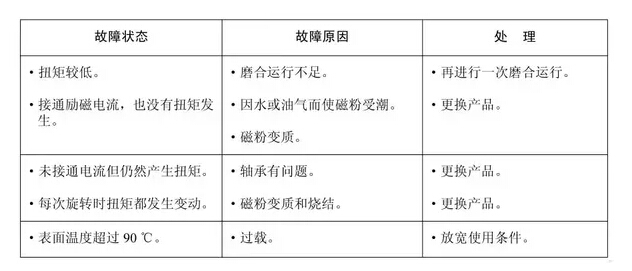 薄型空心軸磁粉制動(dòng)器故障的檢查和處理: